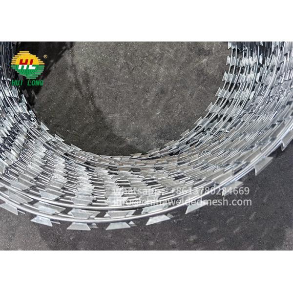 Razor Barbed Wire is a high security fencing mesh used to protect commercial, industrial and government industries.This product is virtually impossible to climb through or cut with standard tools. Razor meshis not animal friendly. Razor Barbed Wire, is a new type of protective net. It is made of hot-dipped galvanized steel plate or stainless steel sheet with sharp blade shape and high tension galvanized steel wire or stainless steel wire as core wire. Due to the unique shape of razor barbed wire, it is not suitable to touch, which can achieve excellent protection and isolation effect. Razor Barbed Wire has beautiful, economical, and practical, good anti-obstruction effect, convenient construction and other excellent characteristics. Currently, Razor Barbed Wire has been widely used in many countries, such as industrial and mining enterprises, garden apartments, border posts, military fields, prisons, detention houses, government buildings and other high security facilities.